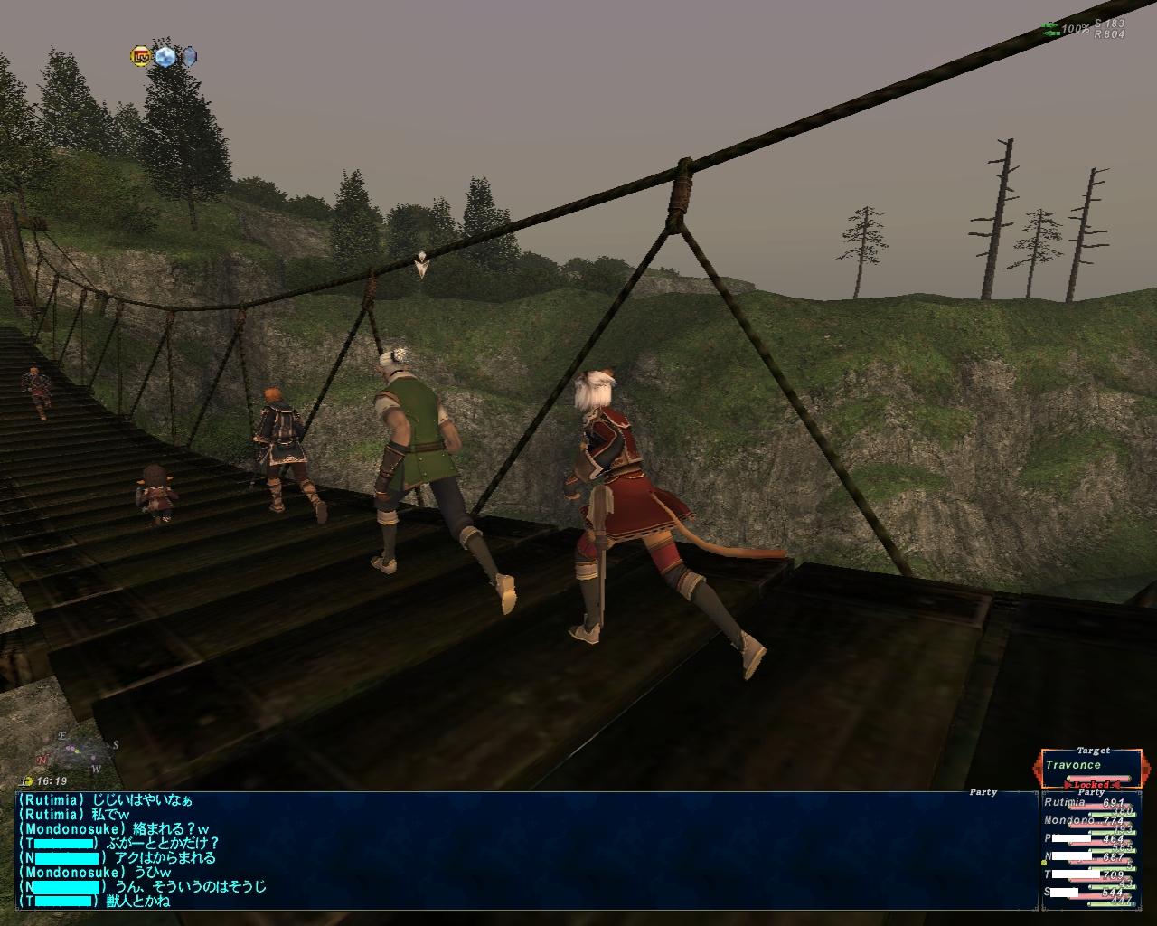 最初は吊り橋で釣り。モンスを1匹つりあげます。